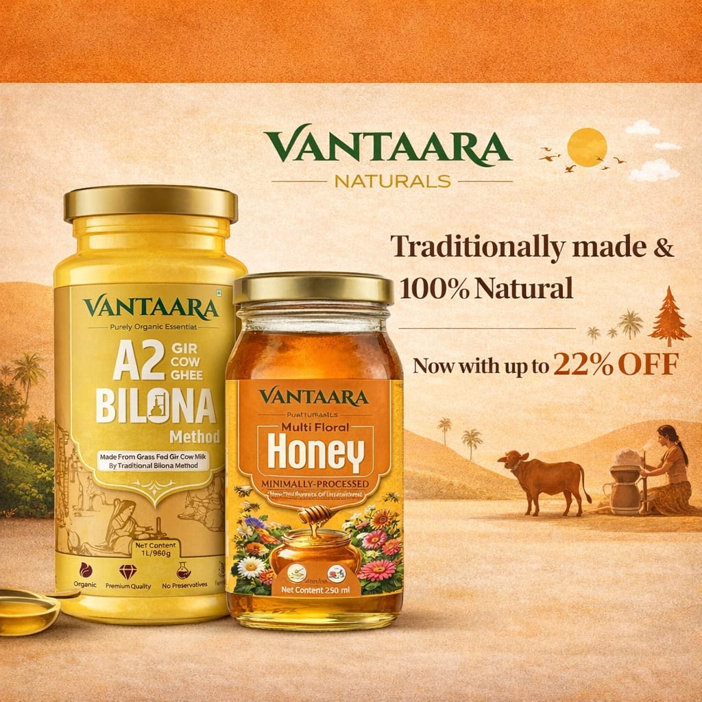 At Vantaara Naturals, we believe purity is not a trend — it’s a responsibility. In a world filled with shortcuts and mass production, we choose to walk the slower, honest path of tradition. We exist to bring back authentic nourishment through time-honored practices like Bilona-crafted A2 ghee and naturally sourced honey. Every product we create reflects care, transparency, and respect for nature. We serve families who value health, trust, and conscious living. No compromise, no adulteration — only the richness of nature in its purest form.